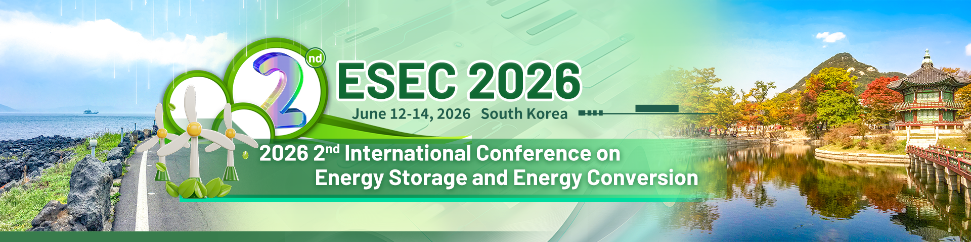 The 2026 2nd International Conference on Energy Storage and Energy Conversion (ESEC 2026) will be held in Hohhot, China & Seoul, Korea (South), from June 12 to 14, 2026. This conference aims to bring together leading scholars, researchers, and industry experts worldwide to exchange cutting-edge research and innovative applications in energy storage and energy conversion technologies. The event will focus on key topics such as advanced battery technologies, renewable energy conversion, and smart energy management systems, serving as a high-level platform for academic and industrial collaboration. ESEC 2026 seeks to drive breakthroughs in energy storage and conversion technologies, promote the efficient utilization of clean energy, and contribute to the optimization of global energy structures and sustainable development. Experts and scholars from around the world are cordially invited to participate and jointly shape the future of energy!